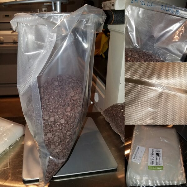 If you have a chamber-type machine: Buy a chamber-type bag (mesh-less design). The open end of the vacuum bag must be the same size or shorter than the seal bar on your machine, and the bag must also fit inside your machine’s chamber.
