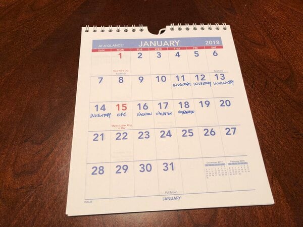 Keep track of important dates with the help of this At-A-Glance PM528 6 1/2" x 7 1/2" mini monthly January 2026 - December 2026 wirebound wall calendar! This calendar features 1 month per page, providing ample room for you to see meetings and events for the upcoming weeks. Each month includes past and future months for quick and easy reference as you plan out your schedule. It also highlights federal holidays for your convenience.