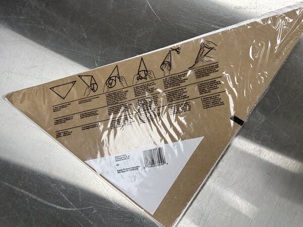To assemble the triangle parchment sheet into a cone, simply following the directions included on the bag. When the bag is no longer needed, it can simply be disposed of for easy clean up. Whether you're decorating at a commercial bakery or making eye-catching creations for a catered event, this parchment triangle is an excellent choice!