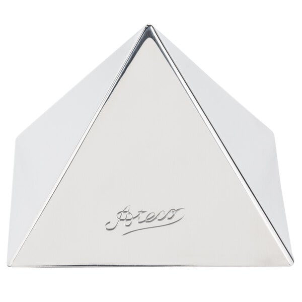 Ensure your meal presentation is always precise and creative with this Ateco 4936 3 1/2" x 2 1/2" stainless steel medium pyramid mold! Made of high-quality stainless steel, this unique item is durable and built to last. This ensures consistency of size and shape, while also cutting down on preparation time when compared to hand-molding. Additionally, it assists with portion control and therefore helps you to prevent waste and save on food costs!