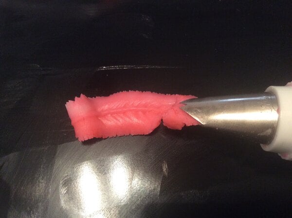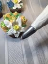 A slightly larger leaf tip that I like to use for carrot cakes. It allows me to keep a realistic leaf to go along g with a piped buttercream carrot.