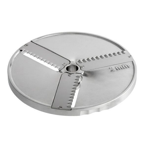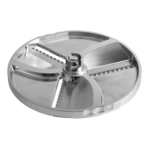 This AvaMix Goliath 5/64" ripple slicing plate is a perfect companion for AvaMix Goliath 2 hp food processors. The ripple-style cut creates wavy, rippled slices that are great for making homemade chips, garnishes, and even vegetables for a display tray. It is designed to be used with the continuous feed head attachment on your food processor and is a great way to boost productivity in your kitchen. Make the most of your food processor and prep your ingredients faster with this convenient slicing plate!