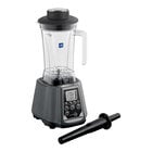 With its 2 hp, 1500W motor and heavy-duty stainless steel blade assembly, this blender provides the power you need to easily crush through ice, to blend mixed drinks, smoothies, house-made spreads or salsa, and anything else you can throw at it! This unit is great for serving up refreshing beverages at a juice or smoothie bar, or churning out mixed drinks at a pub or restaurant. The blender includes a 3 1/2' power cord and requires a 120V electrical connection.