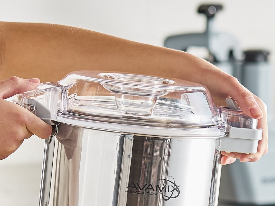 The 3 qt. bowl comes with a clear lid with an opening to monitor processing progress and add ingredients when necessary. The lid seals magnetically.