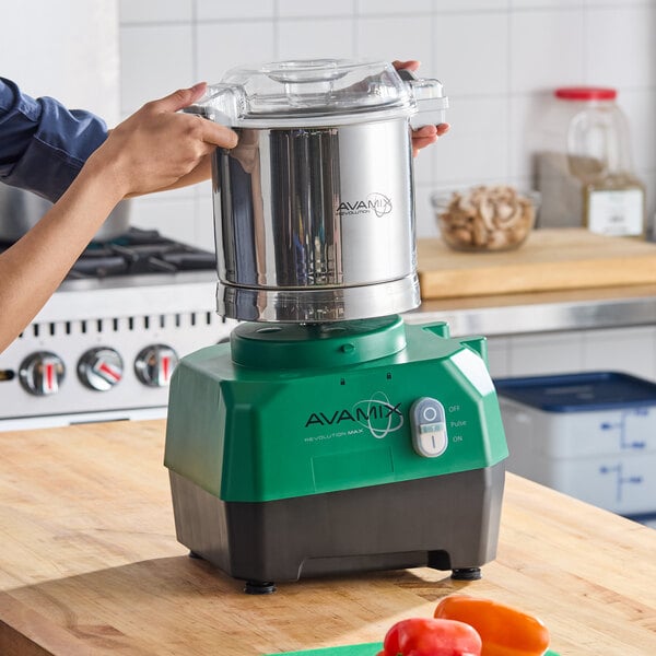 Streamline your prep work with this AvaMix Revolution Max food processor! Boasting an efficient 1 1/2 hp motor and 1,100W of power, this robust unit packs the requisite power to handle large quantities of soft and firm fruits and vegetables. The built-in dicing function helps you achieve consistent cuts every time, while the included "S" blade provides added versatility. The unit's heavy-duty construction with nonskid feet ensures it will hold up to the demands of commercial kitchen operations. It's also compact in size for use in establishments that have limited counterspace.
