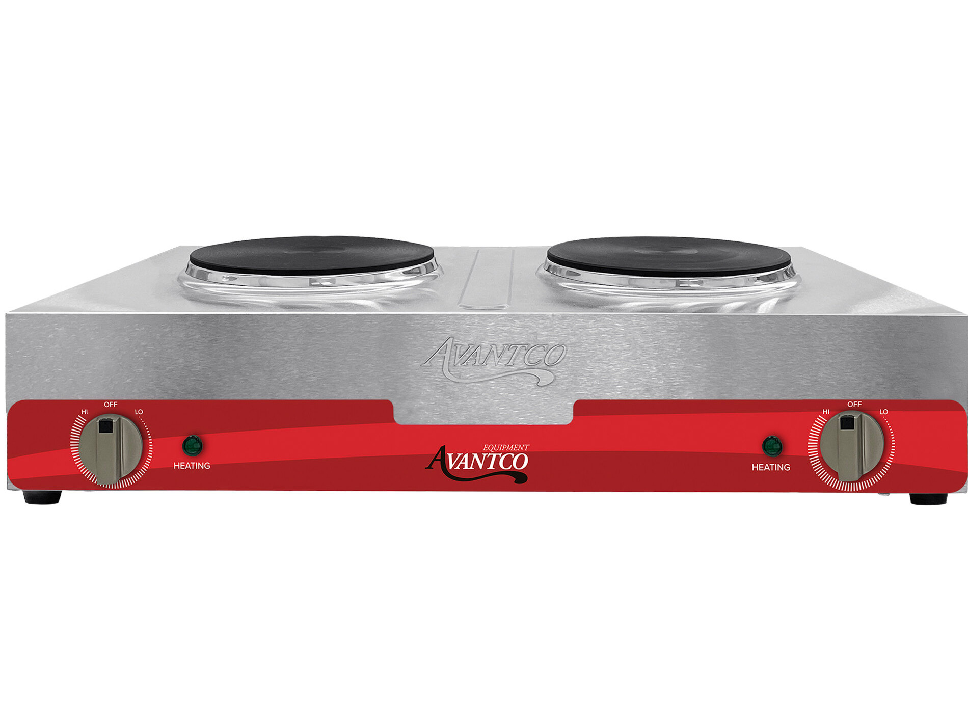 Take the convenience of range cooking foods to your countertop or on the go with this Avantco double burner solid top stainless steel portable electric hot plate. It features a side-by-side design with (2) 7" burners. With 3,000 watts of cooking power, this hot plate allows you to easily prepare meals anywhere!