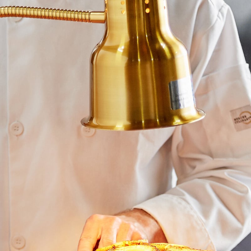 This lamp is great for use with carving stations at hotels, banquet halls, or catered events. It gives you a range of heating options thanks to its flexible body that may be lowered toward, or raised away from foods with ease. It also provides a clear view of what you're doing, which helps to ensure precise cuts when working on your delicious meats and other product.