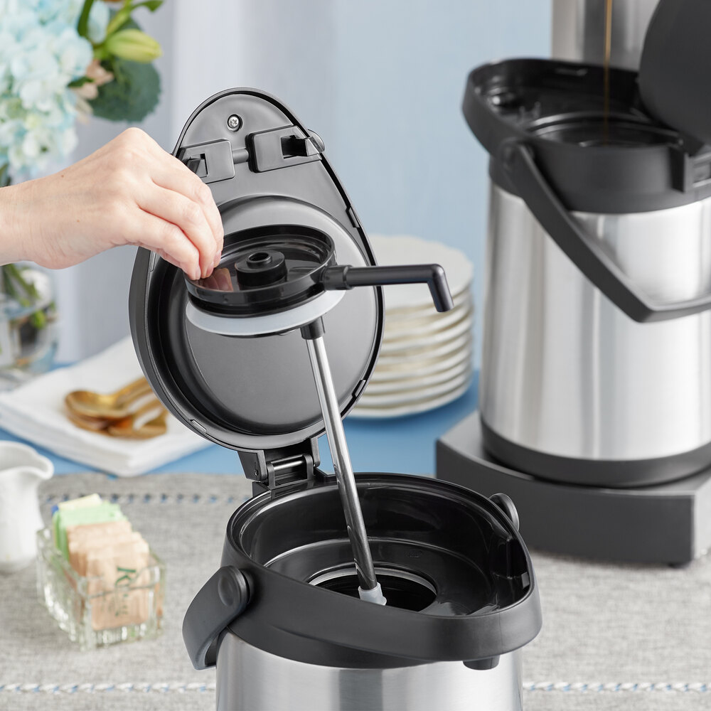 It boasts a quick-remove head to make removal and cleaning easy and hassle-free. To make coffee identification fast and efficient, the black lever marks the coffee as "regular" so patrons can see the airpot contains caffeinated hot beverages.