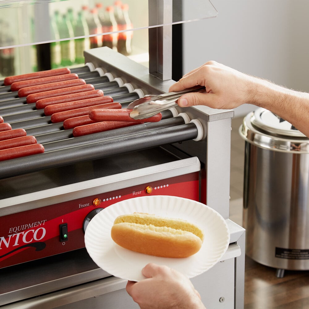 I recently purchased this set for my team at work as well as a popcorn machine (item #177POP8). It was a big hit! I went with this set for its large capacity not only on the grill itself but for plenty of storage for the buns as well. I used bun length franks on the grill and it still was able to fit all 30. After it warmed up it took about 10-15 mins to cook all the hot dogs. This machine is very quiet and it seems like a pretty sturdy unit. Absolutely no regrets with this purchase and I look forward to using it more in the future. A big thanks to webstaurantstore.com for carrying a great selection of products to choose from and getting it to me in a timely manner!