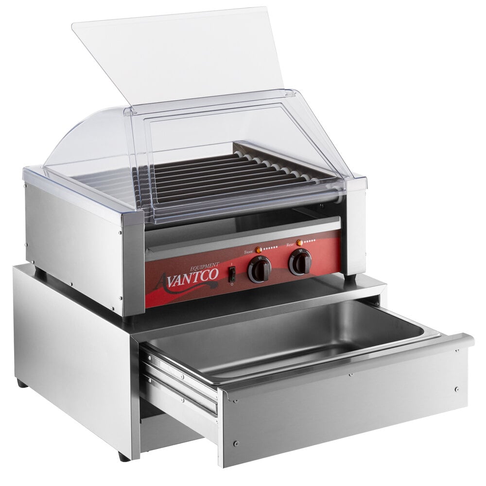 The roller grill features 11 non-stick rollers and can fit up to 30 hot dogs simultaneously, making it great for low- to moderate-volume operations. Besides hot dogs, the grill is also well-suited to cook up egg rolls, sausages, and even taquitos. Whatever you're cooking, the continually rotating rollers will ensure that it's evenly cooked from all sides.