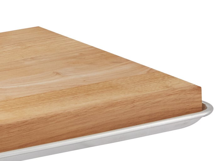 The cutting board, which is made from durable wood to resist deep scratches, is reversible for a longer service life. It is sturdy enough to be used with your biggest knives. At 24" long and 16" wide, you'll have plenty of space to work on.