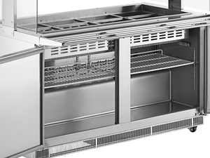 So the salad bar works ok, however there are several issues that haven't been resolved since we purchased new. There is a finish product issue, meaning that one edge of the metal is sharp, so we had a customer and employee cut themselves. Also, this food table leaks water. I believe from the humidity, but we keep our room temp between 70 - 75. I would expect a designated bin to discharge water vs. letting it go to the floor. I have inquired about this but haven't received a reply. The warranty company has never replied to my issue, so be mindful when purchasing that. Other then this, the bar looks nice and it's easy to keep clean...