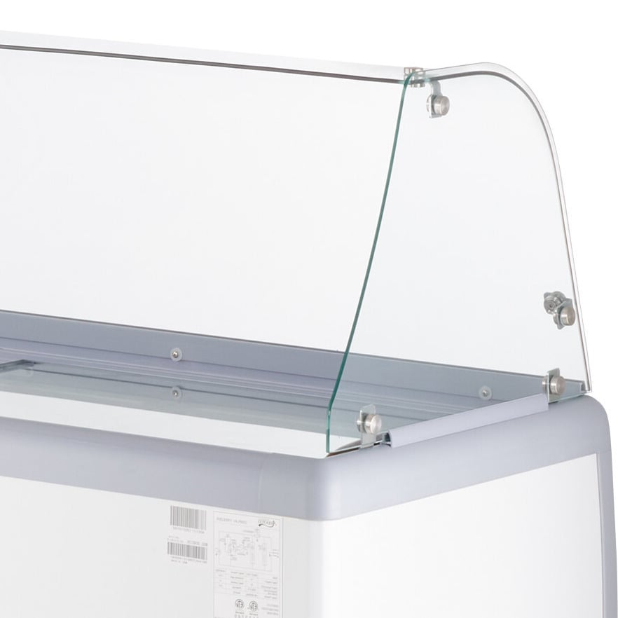 A sliding cover protects the ice cream while helping to retain cold air around the product for a safe holding environment. Because it slides open and closed, it's fast and easy to use as well, making it ideal for busy periods. The cover also comes equipped with a lid lock to ensure that your ice cream remains protected and temperature controlled.