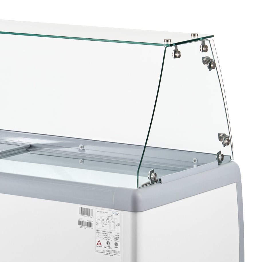 A sliding cover protects the ice cream while helping to retain cold air around the product for a safe holding environment. Because it slides open and closed, it's fast and easy to use as well, making it ideal for busy periods. The cover also comes equipped with a lid lock to ensure that your ice cream remains protected and temperature controlled.