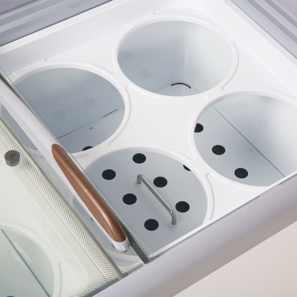 A convenient frozen storage space underneath the display accommodates up to 6 ice cream tubs. Not only does this provide easy access to your back-up flavors, but it also helps save on valuable storage space in your establishment.
