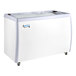 A sliding cover protects your product while helping to retain cold air around the product for a safe holding environment. Because it slides open and closed, it's fast and easy to use, too, which is perfect for those busy rush hours or constant streams of customers in the summer months! The cover also comes equipped with a lid lock to ensure that your product remains protected and temperature controlled. This dipping cabinet also features a white, curved front design with a painted steel construction. Plus, it has LED lighting to help light and show off your products!