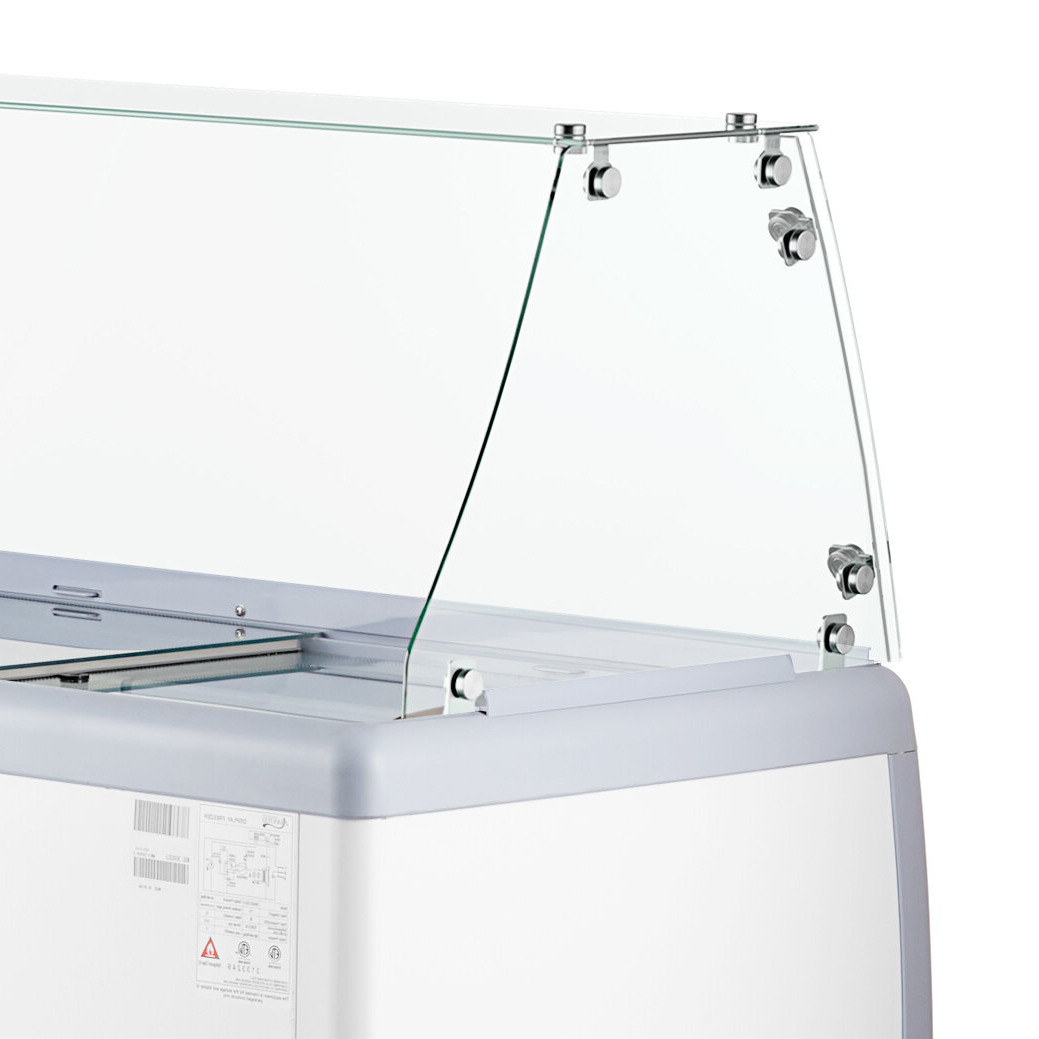 A sliding cover protects your product while helping to retain cold air around the product for a safe holding environment. Because it slides open and closed, it's fast and easy to use, too, which is perfect for those busy rush hours or constant streams of customers in the summer months! The cover also comes equipped with a lid lock to ensure that your ice cream remains protected and temperature controlled.
