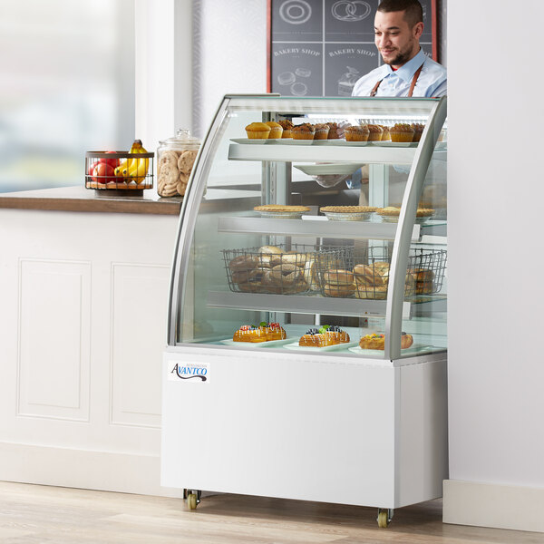 - Item #: 193bct36wAvantco BCT-36 37" White 3-Shelf Curved Glass Refrigerated Bakery Display Case with LED Lighting