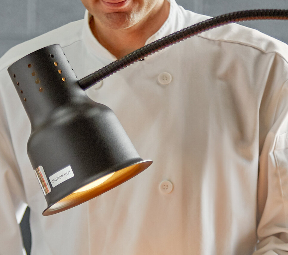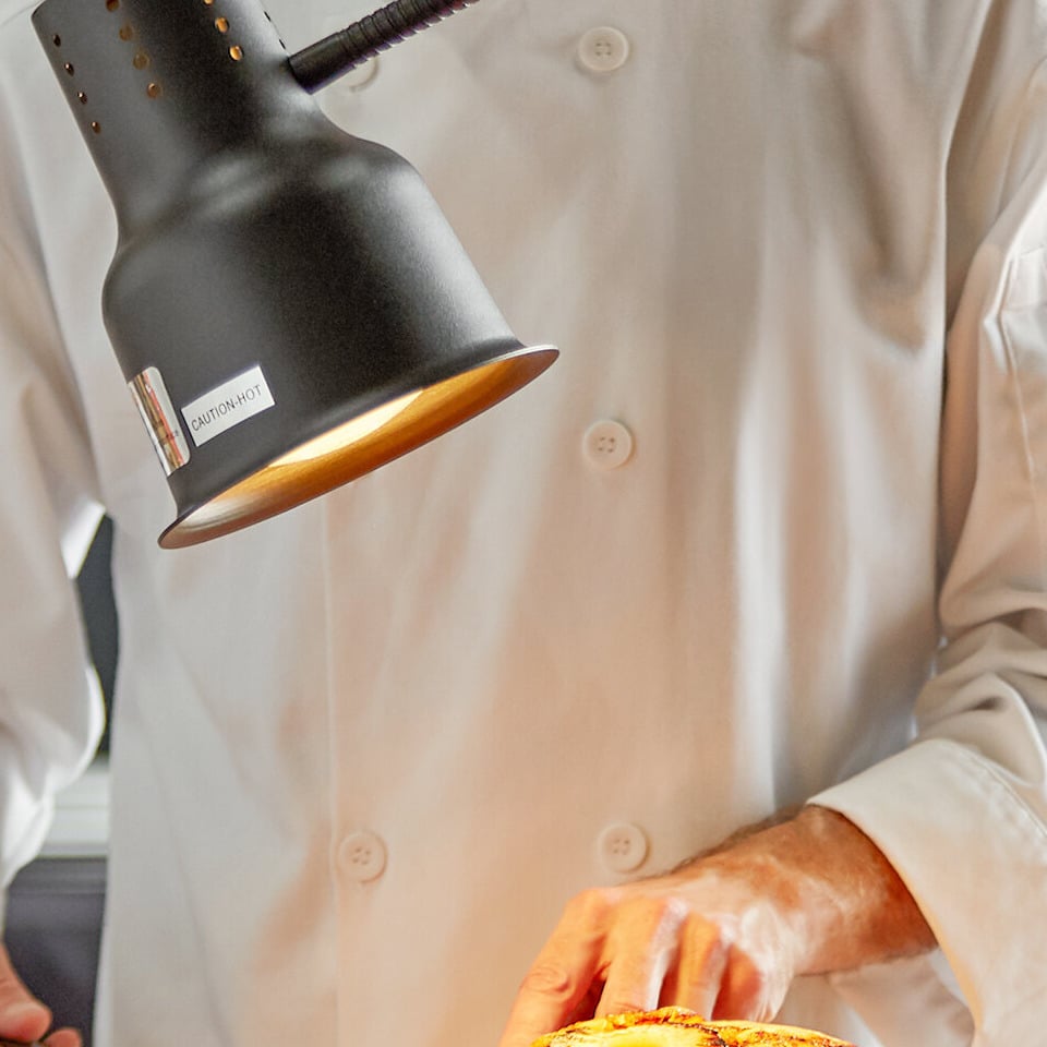 This lamp is great for use with carving stations at hotels, banquet halls, or catered events. It gives you a range of heating options thanks to its flexible body that may be lowered toward, or raised away from foods with ease. It also provides a clear view of what you're doing, which helps to ensure precise cuts when working on your delicious meats and other product.