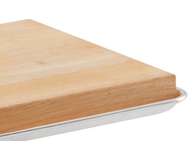 The cutting board, which is made from durable wood to resist deep scratches, is reversible for a longer service life. It is sturdy enough to be used with your biggest knives. At 24" long and 16" wide, you'll have plenty of space to work on.