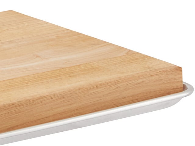 The cutting board, which is made from durable wood to resist deep scratches, is reversible for a longer service life. It is sturdy enough to be used with your biggest knives. At 24" long and 16" wide, you'll have plenty of space to work on.