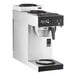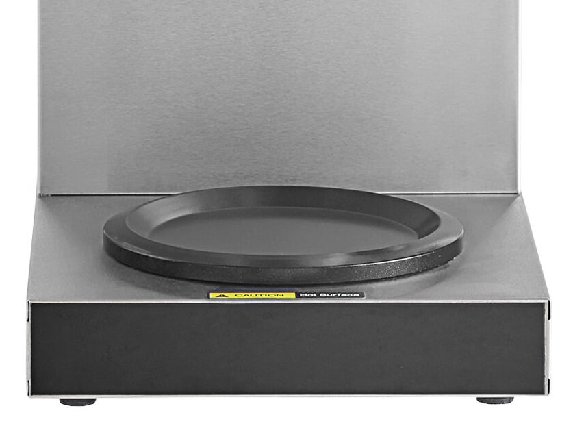 This rugged stainless steel coffee maker boasts 3 decanter warmers, 1 lower and 2 upper, so you always have fresh coffee ready while the next pot is brewing, and has a compact 8 1/4" wide footprint that occupies minimal countertop space. Independent controls for warming and brewing allow you to easily set this coffee machine to fit your needs.