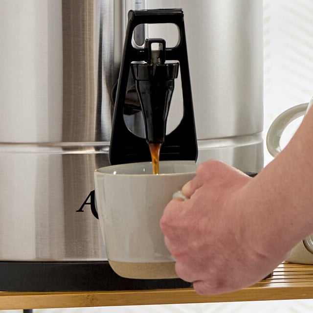 Perfect for caterers, schools, churches, and offices, this easy-to-use coffee urn makes a large amount of coffee at one time so you can quickly serve a crowd. It is designed to keep coffee hot and fresh for hours - through your entire catering event or meal time. Brews approximately (1) 5 oz. cup per minute.