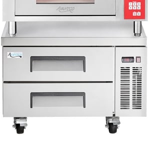 As a space and productivity solution for your kitchen, the included chef base makes it easy to increase efficiency by placing countertop cooking equipment right on top of the chef base where you store your cold ingredients. This base features a durable 1 3/4" stainless steel top that can hold up to 880 lb. of weight. Equipped with a marine edge, the unit's top helps to contain drips and spills for easy cleanup. This unit requires a 115V electrical connection.