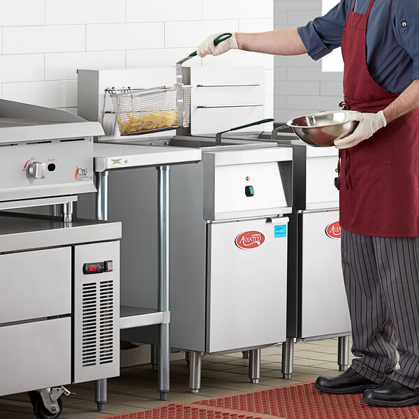This Avantco EF40-240-1 40 lb. electric floor Energy Star-certified fryer provides all purpose, affordable frying in any kitchen.