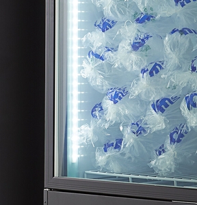This ice merchandiser features a durable, black coated steel housing that is wear-resistant for daily use. It has a professional look, with the customizable panel of your choice at the top. The interior floor is made of stainless steel, to prevent corrosion and ensure long-lasting use.