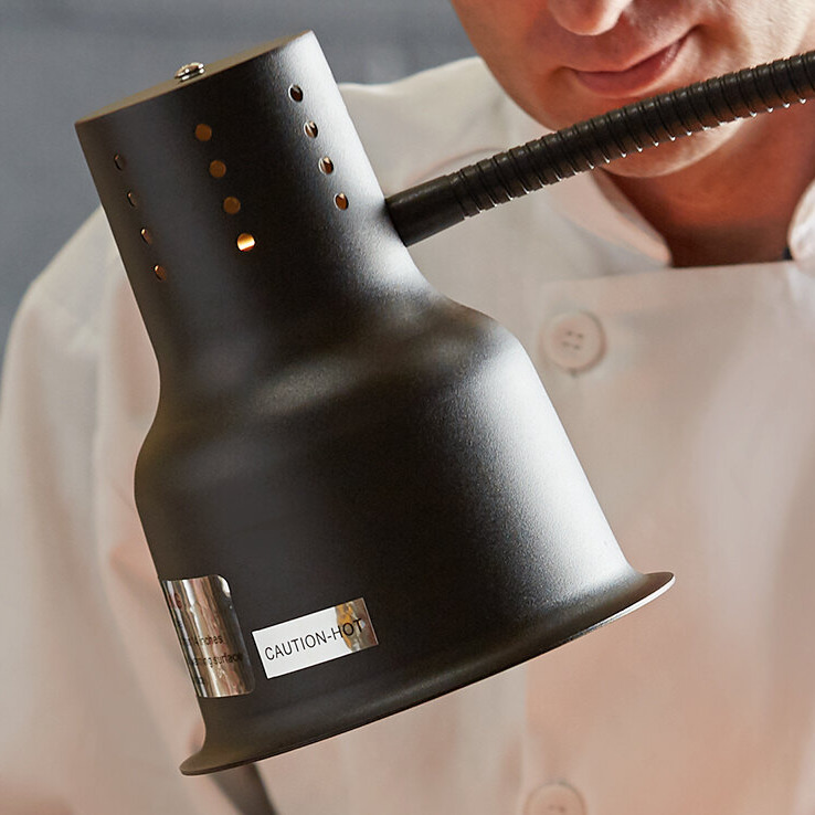 You'll be sure to find a place in your establishment for this heat lamp, which can warm baked goods, fried foods, carving station meats, and more. This lamp's flexible arm can be lowered toward or raised away from foods with ease. The lamp comes complete with an Avantco PCLMPSS stainless steel clamp to ensure a firm grip wherever you decide to place it.