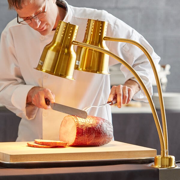 You'll be sure to find a place in your establishment for this heat lamp, which can warm baked goods, fried foods, carving station meats, and more. This lamp's two flexible arms can be lowered toward or raised away from foods with ease. Feel free to adjust them in different orientations to achieve total coverage! The dual-arm lamp comes complete with an Avantco PCLMPSS stainless steel clamp to ensure a firm grip wherever you decide to place it.