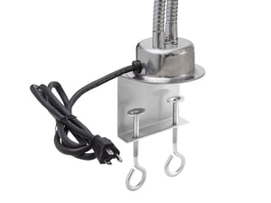 You'll be sure to find a place in your establishment for this heat lamp, which can warm baked goods, fried foods, carving station meats, and more. This lamp's two flexible arms can be lowered toward or raised away from foods with ease. Feel free to adjust them in different orientations to achieve total coverage! The dual-arm lamp comes complete with an Avantco PCLMPSS stainless steel clamp to ensure a firm grip wherever you decide to place it.