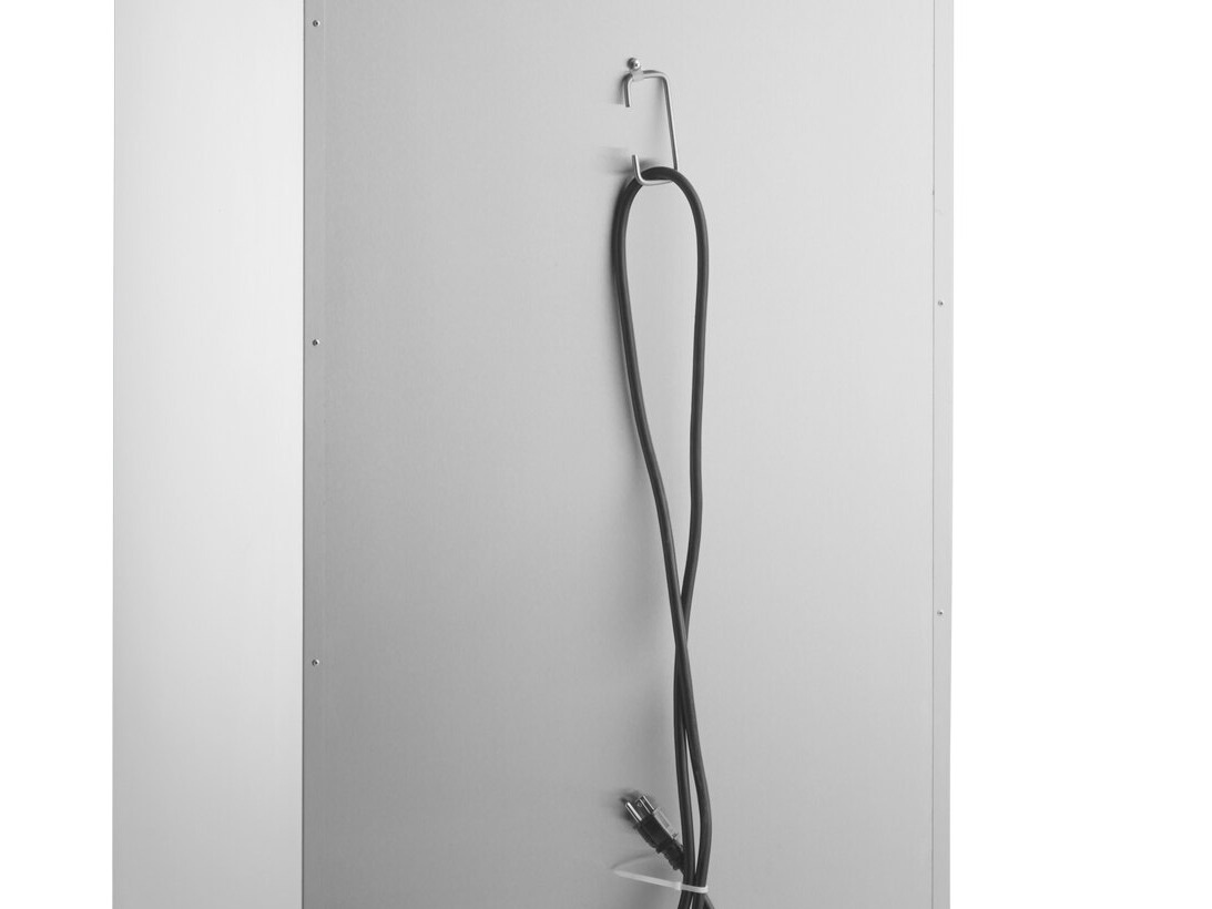 An integrated cord wrap on the back will keep the power cord off the floor and out of the way while you roll the cabinet.