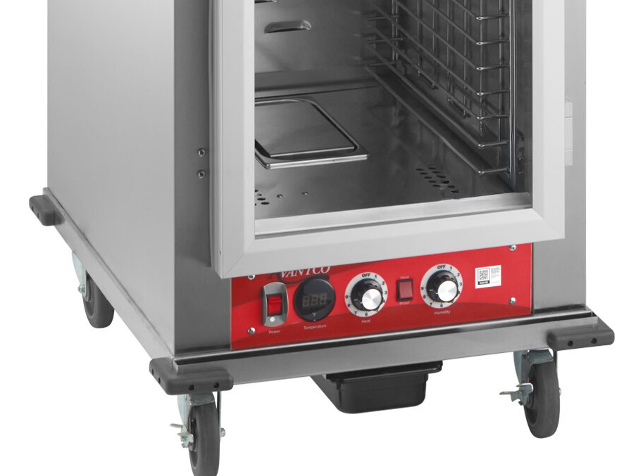The rugged aluminum interior contains removable fixed wire pan slides, allowing you to place up to 36 full size sheet pans on whichever level is convenient. To use the proofing mode, simply fill the pan with water, select the proofing mode, and then select your desired humidity level!