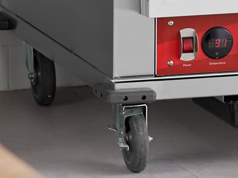 This holding cabinet's straightforward controls couldn't be easier to use. After powering the unit on, simply adjust the temperature to your needs with the large knob. 9 temperature settings are available, up to 185 degrees Fahrenheit. The large, bright LED temperature display will let you see the cabinet temperature easily from across your busy kitchen. A pair of dials is located on the unit's bottom control drawer that can also be removed for quick cleaning.