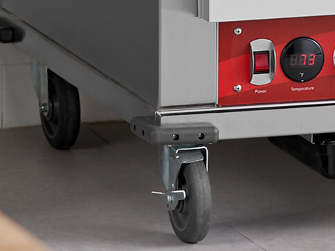 This holding cabinet's straightforward controls couldn't be easier to use. After powering the unit on, simply adjust the temperature to your needs with the large knob. 9 temperature settings are available, up to 185 degrees Fahrenheit. The large, bright LED temperature display will let you see the cabinet temperature easily from across your busy kitchen. A pair of dials is located on the unit's bottom control drawer that can also be removed for quick cleaning.