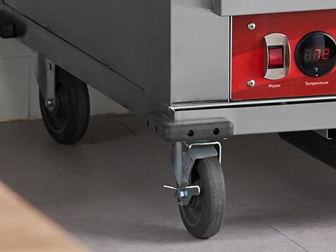 This holding cabinet's straightforward controls couldn't be easier to use. After powering the unit on, simply adjust the temperature to your needs with the large knob. 9 temperature settings are available, up to 185 degrees Fahrenheit. The large, bright LED temperature display will let you see the cabinet temperature easily from across your busy kitchen. A pair of dials is located on the unit's bottom control drawer that can also be removed for quick cleaning.