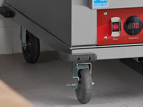 This holding cabinet's straightforward controls couldn't be easier to use. After powering the unit on, simply adjust the temperature to your needs with the large knob. 9 temperature settings are available, up to 185 degrees Fahrenheit. The large, bright LED temperature display will let you see the cabinet temperature easily from across your busy kitchen. A pair of dials is located on the unit's bottom control drawer that can also be removed for quick cleaning.
