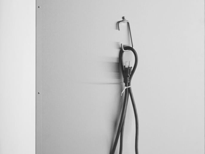 An integrated cord wrap on the back will keep the power cord off the floor and out of the way while you roll the cabinet.