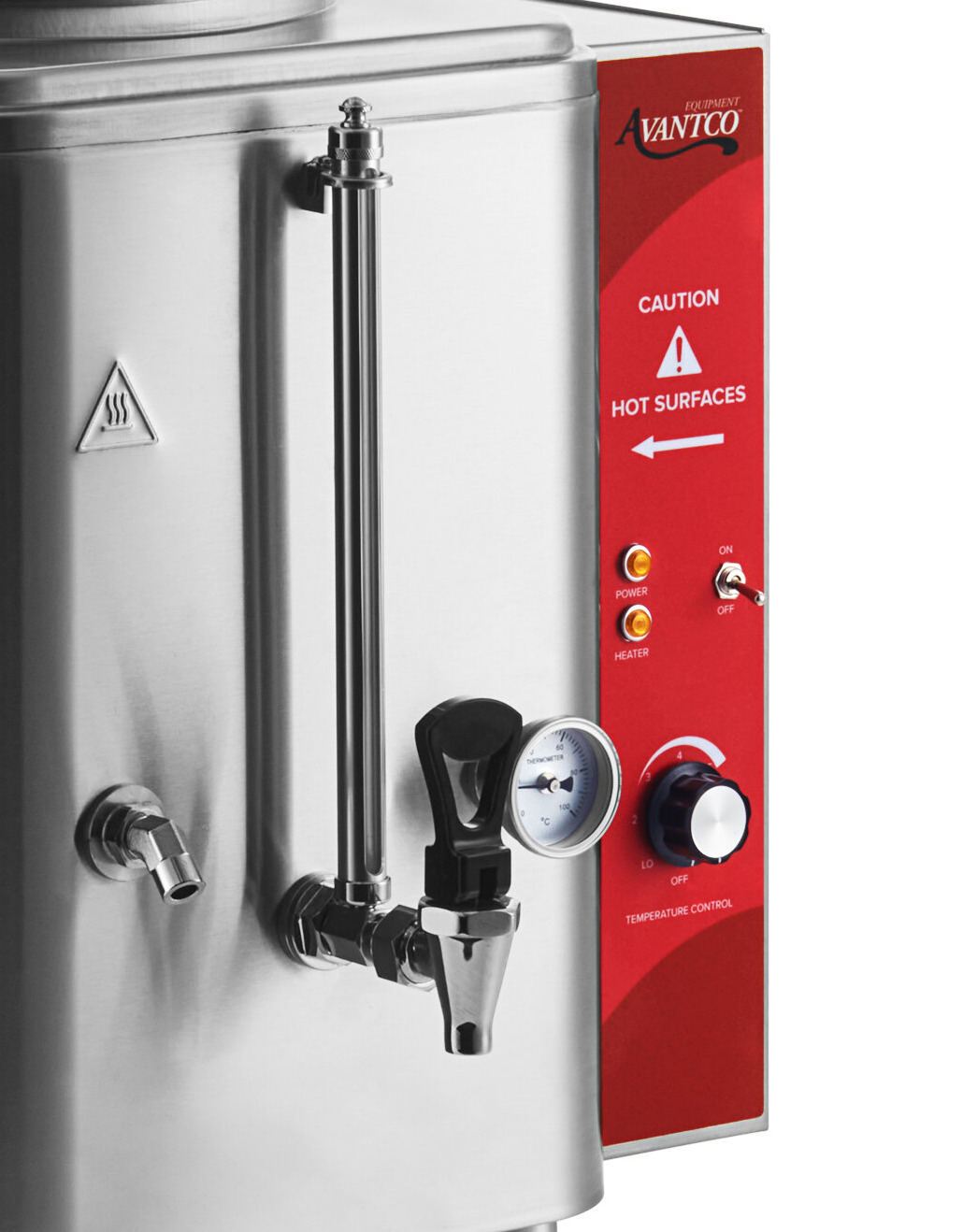 This water dispenser features a dial thermometer for precise monitoring as well as a multi-setting thermostat with a hold setting. Plus, to prevent waste, it has a reliable no-drip faucet. It provides a convenient and affordable way to provide hot water to prepare hot chocolate, tea, and even soups and gravies.