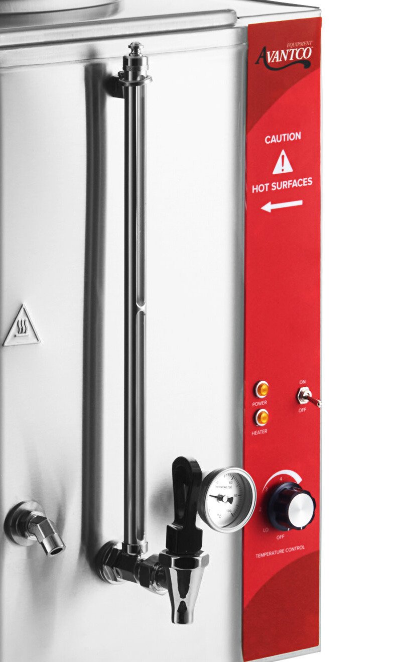 This water dispenser features a dial thermometer for precise monitoring as well as a multi-setting thermostat with a hold setting. Plus, to prevent waste, it has a reliable no-drip faucet. It provides a convenient and affordable way to provide hot water to prepare hot chocolate, tea, and even soups and gravies.