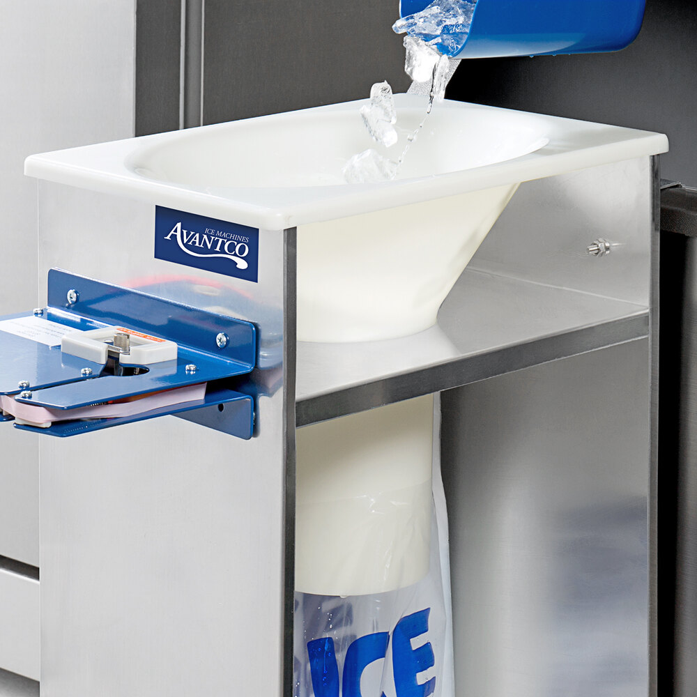 The ice bagger attaches to your ice bin's door frame to make filling and bagging your a ice breeze! Thanks to its handle that allows it to be placed on the bin from either side, both your left- and right-handed employees can comfortably and effectively transfer ice into the ice bagger's poly chute.
