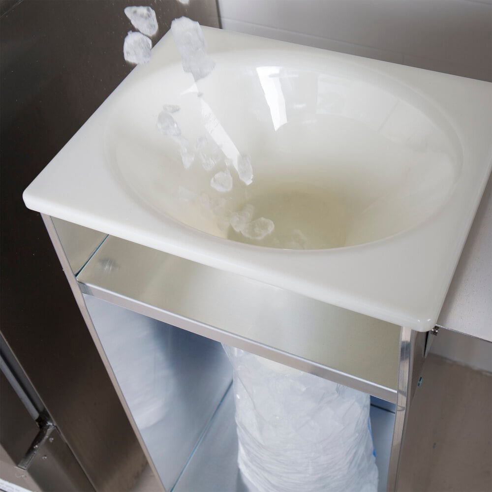 This unit attaches to your ice bin's door frame to make filling and bagging your a ice breeze! Thanks to its handle that allows it to be placed on the bin from either side, both your left- and right-handed employees can comfortably and effectively transfer ice into the ice bagger's funnel.