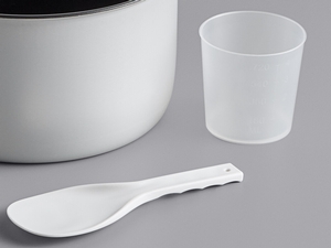 The included clear measuring cup provides quick, accurate portioning of dry rice into the pot, and the rice paddle allows you to efficiently mix, scoop, and serve your rice while preserving its consistency.