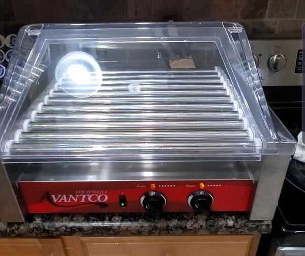 "We purchased this machine to use our our mobile concession trailer. We use 8 to dogs and it has worked very well for us. Takes about 10 minutes to fully heat and and another 10 minutes to get the hot dogs to have the nice grill look to them. The overall construction of the machin..."