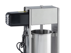 This unit boasts a vertical design that delivers reliable performance while taking up minimal counter space. It includes 5/8", 7/8", 1 1/4", and 1 1/2" stainless steel funnels so you can make snack sticks, sausage, and luncheon meats without needing to buy any additional accessories. The four sizes of funnels allow you to use nearly infinite sizes of collagen, fibrous, and natural casings to make your special dishes.
