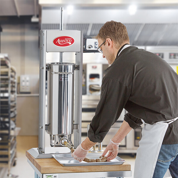 Make kielbasa, chorizo, bratwurst, and other mouthwatering meats with this Avantco SS-30VKIT 30 lb. hybrid electric / manual sausage stuffer!