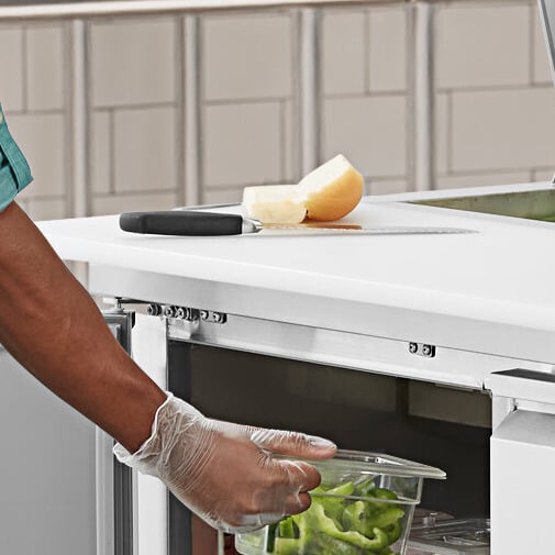 Pizza Prep Models – While 1/3 size pans are the standard to use in pizza prep models, 1/6 size pans may be used when the orientation is changed