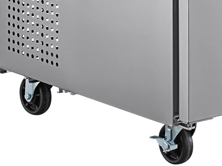 The construction of this unit is designed with commercial use in mind. It features a 430 type stainless steel exterior and 304 type stainless steel interior, which are fortified with foamed-in-place polyurethane insulation. The insulation also helps to promote proper temperature retention. For operation, the prep table requires a 115V electrical connection.